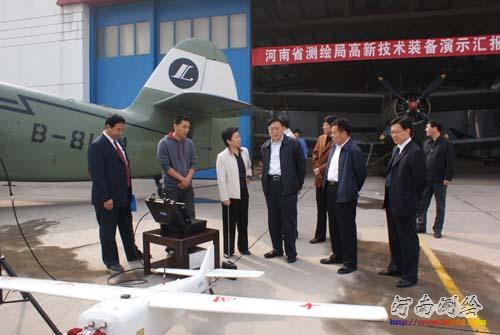 本网讯 记者秦福军 王红闯报道 近年来,河南省测绘局在河南省政府、省国土资源厅、省财政厅的协调和支持下,河南省测绘装备建设大大增强,测绘信息化水平有了较大提高,服务河南省经济社会建设、国土资源管理、防灾减灾等测绘应急保障服务能力快速提升。为进一步提高原始数据快速获取和处理能力,提升河南省测绘应急保障服务能力,更好地服务于国民经济建设和国土资源管理,河南省测绘局于9月26日在郑州上街机场举办向省政府和省国土资源厅领导演示汇报测绘高新技术装备活动,河南省政府张大卫副省长出席活动并作重要讲话,河南省政府办公厅、河南省财政厅、省国土资源厅、河南省民航办、河南省航空运动管理中心有关领导和有关处室负责同志参会,河南省测绘局领导分别就加强测绘能力建设作专题工作汇报和专题演示汇报。河南省测绘局其他领导和机关副处级以上干部、局直属单位党政负责人共约60人左右参加活动。此次活动对机载激光扫描系统、无人机航摄系统、数字摄影测量网格等进行演示,高新技术测绘搭载“运五”的飞行和小型无人机航摄飞行圆满成功,与会人员还实地参观关于高新技术测绘装备展览。