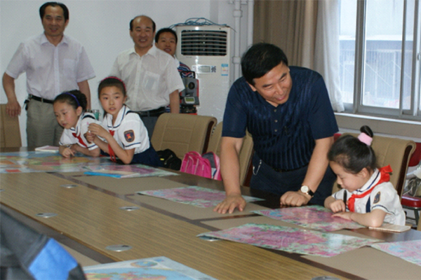 看着大家对地图这么着迷,禄丰年副局长很高兴,他语重心长地说:“我们的祖国幅员辽阔,增强国家版图意识,要从娃娃抓起!”“地理信息产业的蓬勃发展,你们就是未来、你们就是希望!”“请禄伯伯放心,我们一定好好学习,掌握更多的地图知识。”孩子们天真无邪的话把大家都逗乐了。