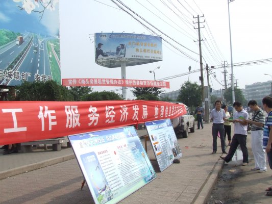 本网讯(通讯员林利伟)报道 在今年的“8.29”测绘法宣传活动之日,三门峡市根据工作实际,通过精心组织,进行了丰富多彩的宣传活动,该市与移动公司合作,利用通讯网络向市民发放测绘公益短信10000余条;在中心广场和各县(市、区)繁华地段设立宣传点14个;悬挂横幅标语59条;散发各类宣传材料2500多份;宣传展板48块;咨询群众7000余人次,该市局主管领导和各测绘单位相关人员。都参加了宣传活动。