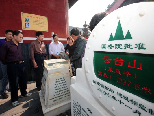 云台山高程数据是国家重要的基础地理信息,经国务院批准颁布后,焦作市人民政府决定在主峰茱萸峰设立名山高程标志和标志纪念碑,由焦作市国土资源局、云台山风景名胜管理局组织,由河南省中纬测绘规划信息工程有限公司设计制作完成,高程标志和标志纪念碑分两座设立。