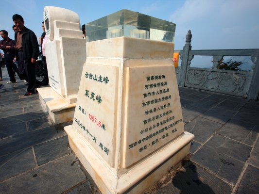 精美典雅的云台山高程标志和标志纪念碑,如一颗璀璨夺目的明珠镶嵌在海拔1297.6米的茱萸峰峰顶,与深邃幽静的沟谷溪潭,千姿百态的飞瀑流泉,如诗如画的奇峰异石,辉煌灿烂的人文景观交相辉映,不仅成为天下名山云台山的又一道靓丽的风景线,而且,为宣传测绘有很重要意义,一批又一批的游人在此驻足,品评碑文,拍照留影,流连忘返。
