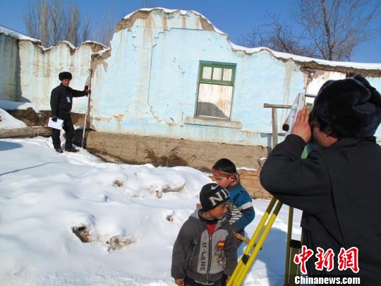 在伊宁县温亚尔乡多浪小学测绘点,新疆第一测绘院王开甲告诉记者:“要搞清楚这条路是沥青路面还是土路,我们必须铲开积雪。就这样一个点一个点仔细测绘,丝毫不敢马虎。在积雪中工作一天下来,裤子和鞋子几乎都湿透了”。