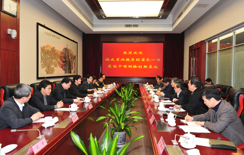 正式会见前,洪捷序一行饶有兴趣地参观了中国测绘科技馆。