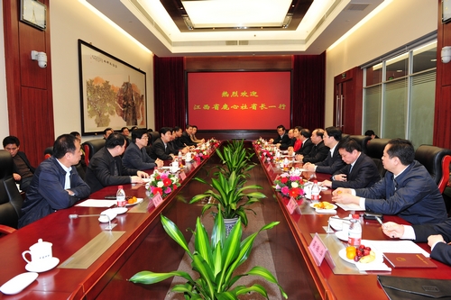 3月6日下午,国土资源部副部长、国家测绘地理信息局局长徐德明在中国测绘创新基地会见江西省委副书记、省长鹿心社一行。江西省委常委、常务副省长凌成兴,副省长谢茹、胡幼桃,国家测绘地理信息局领导班子全体成员参加会见。