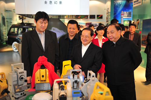 | 正式会见前,鹿心社一行在徐德明等领导陪同下参观中国测绘科技馆。 |