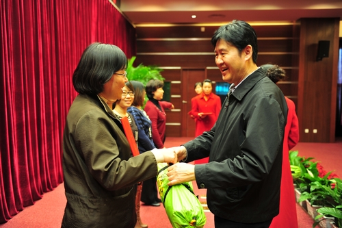 | 徐德明为一等奖获奖女职工颁奖。 |