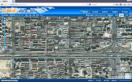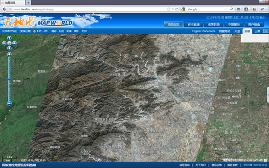 资源三号测绘卫星为天地图提供的影像主要对应第11-16级地图,广大公众可登录天地图在相应级别浏览查看资源三号的影像数据,也可登录“资源三号测绘卫星数据服务网”进行查阅。 |
