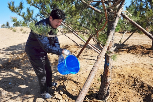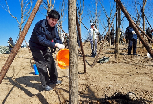 徐德明一大早来到植树地点北京市大兴区南海子森林公园,在植树现场挥锨铲土、提桶浇水,认真细致地种植每一株树木。在植树同时,与局绿化办同志回顾了历次参加义务植树活动情况,并就做好局绿化美化工作提出了希望和要求。(于建明2012.3.26)