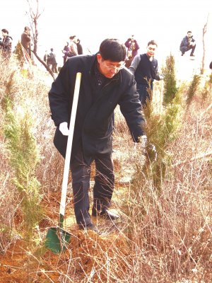 春暖花开日,植树正当时。3月12日,为积极响应省绿化办、省直文明办和省直绿化办的号召,王进福副局长带领局部分干部职工来到荥阳项沟村,参加了“关爱自然、义务植树”志愿服务活动。参加植树的同志拿着铁锨和水桶,沿着蜿蜒山路走了20分钟到达指定地点,虽然当天有风,山上荆棘很多,有的同志衣服都被扎破了,可是大家积极性很高,高标准高质量完成挖坑任务,按要求种下一棵棵侧柏苗并浇好水,共同为省会创建国家森林城市推进生态建设再添新绿。
