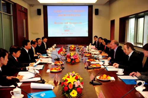 4月19 日,国家测绘地理信息局副局长宋超智在中国测绘创新基地会见了英国诺丁汉大学常务副校长戴维·格林威率领的诺丁汉大学代表团,宋超智向来访客人介绍了中国地理信息产业的发展和国家地理信息科技产业园的建设情况。