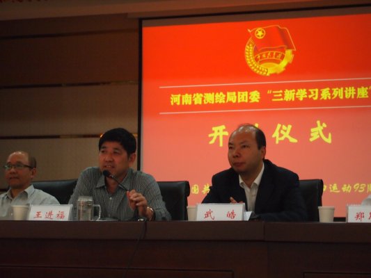 今年是建团90周年和“五四”运动93周年,根据省直团工委的安排,为正确引导我局广大团员青年增强团的意识和党的观念,激励大家坚定理想信念,更好地学习新知识、新技术、新技能,争取岗位建功、岗位成才,为中原经济区建设及河南测绘事业的发展贡献青春和力量,以实际行动迎接党的十八大的胜利召开,经局领导同意,河南测绘局团委在全局团员青年中开展“三新学习系列讲座”活动于5月4日举办了学习新知识、新技术、新技能“三新学习系列讲座”开讲仪式暨第一场讲座。