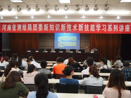 “三新学习系列讲座”开讲仪式邀请了河南局领导、直属各单位分管共青团工作的领导和各单位团委书记参加,此外还特别邀请到河南省直团工委书记参加。第一场讲座由局青年学术技术带头人有关同志为大家讲授“机载激光雷达技术及应用”。主要介绍机载激光扫描系统(LIDAR)在河南省基础测绘以及“数字城市”建设工作中的应用和相关理论基础。全局100多名团员青年参加了讲座。