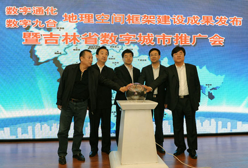 李维森、李建华和吉林省测绘局、通化市、九台市的相关领导共同启动了数字通化、数字九台地理信息公共服务平台。会议还进行了数字通化、数字九台项目成果演示。(卢洪岩 2012.5.18)