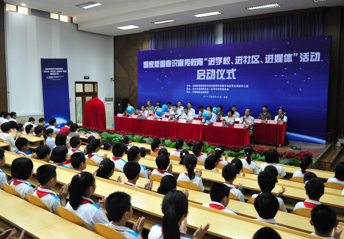 5月18日,国家版图意识宣传教育“进学校、进社区、进媒体”活动启动仪式在北京市中古友谊小学举行。全国国家版图意识宣传教育和地图市场监管协调指导小组组长、国家测绘地理信息局副局长闵宜仁出席仪式并讲话。外交部、教育部、公安部、民政部、商务部、国家工商行政管理总局、国务院新闻办公室、国家保密局等部门有关负责人和北京市相关部门负责人、社区与媒体代表以及中古友谊小学部分师生参加了仪式。