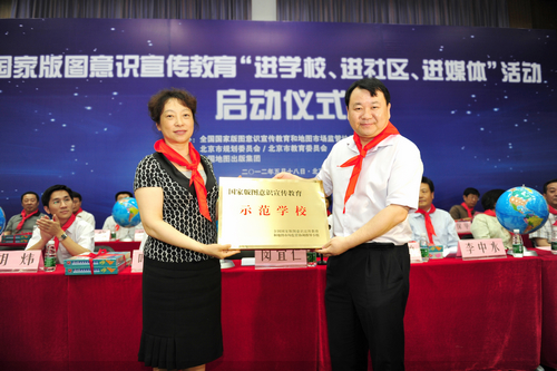 启动仪式由全国国家版图意识宣传教育和地图市场监管协调指导小组主办,北京市规划委员会、北京市教育委员会承办,中国地图出版集团协办。(王熙 蔡紫南 2012.5.18)