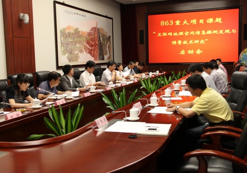 日前,国家高技术研究发展计划(863)重大项目课题“互联网地理空间信息探测发现与预警技术研究”启动会在北京召开。国家测绘地理信息局副局长李朋德出席会议并讲话,科技部国家遥感中心总工程师李加洪、项目责任专家周成虎研究员参加会议。