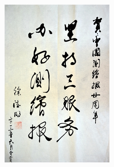 徐德明的题词是“坚持三服务,办好测绘报”(如上图),要求中国测绘报坚持服务大局、服务社会、服务民生,为测绘地理信息事业再创辉煌作出更大贡献。(立实)