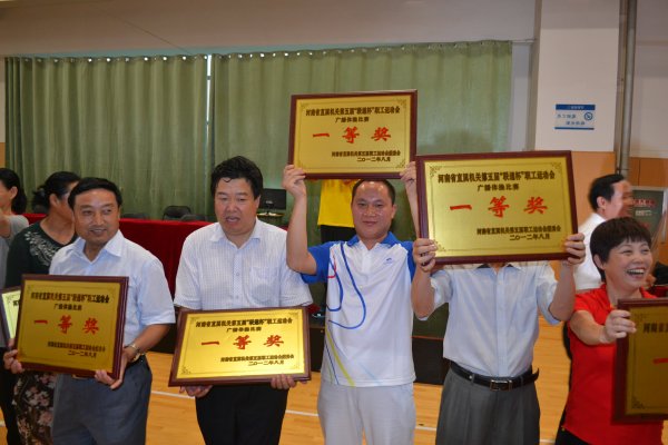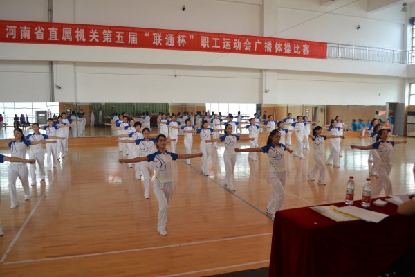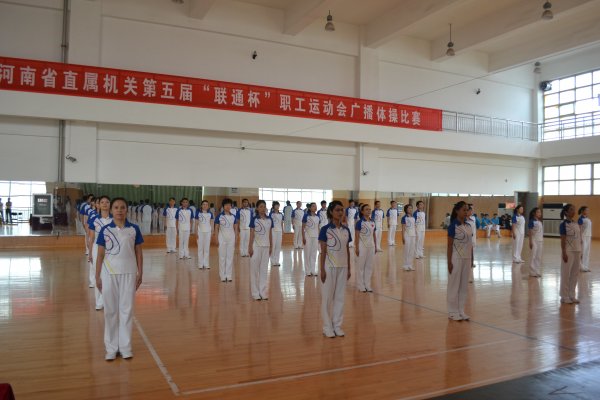 在省直五运会召开的通知下发后,局领导立即批示机关党委积极组队参加。经过报名选拔,确定派出80余名干部职工参加广播体操、健步走、游泳、乒乓球、象棋、围棋、跳绳、台球等8个项目的比赛。广播体操比赛是五运会必须参加的项目,也是展现一个单位整体精神风貌的集体项目,各单位都十分重视。机关党委通过2次选拔,从报名的100多名人员中精心挑选了40名队员组成测绘局代表队。由于我局是生产单位,一线人员生产任务紧张而繁重,各派出单位积极配合、大力支持队员训练。从6月中旬开始,每周有3次集训,每次两个小时。局长贾志伟和分管副局长王进福多次亲临集训现场,高标准、严要求,也给了队员们很大鼓舞和动力。机关党委的同志认真负责,严抓集训纪律、抓好动作指导、搞好后勤保障。参赛队员在炎热盛夏开始集训,队员中年龄最大的54岁,还有不少孩子尚幼无人照顾的,自己在训练中感冒发烧、身体不适的……,一个动作定格几分钟,汗水湿透了衣衫,2个小时高强度训练,个个腰酸背疼,十分疲累,可是大家仍旧克服重重困难、战胜酷暑、严格训练,没有一个叫苦的、轻伤不下训练场。训练占了作业时间,晚上还要加班到十点左右,保证工作不落下。两个多月的艰苦训练不仅提高了大家的做操水平,更重要的是,锻炼了大家吃苦耐劳、团结拼搏的集体主义精神,也体现了我们测绘职工特别能吃苦、特别能战斗、特别能奉献的优良作风,为了集体的荣光,我们无往而不利。