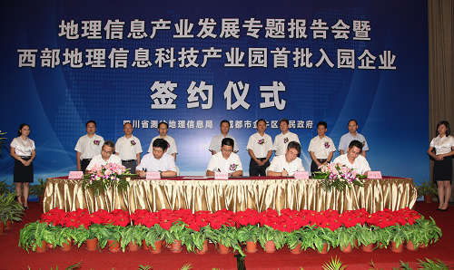 报告会上,宋超智、宁津生院士、四川局主要负责人、中国人民解放军某部负责人分别就国际国内地理信息产业发展形势、地理信息技术体系、西部地理信息科技产业园规划建设思路、卫星导航技术发展及社会化应用知识等作了报告。报告会前举行了首批入园企业座谈会,企业代表纷纷表明了扎根产业园的意愿。