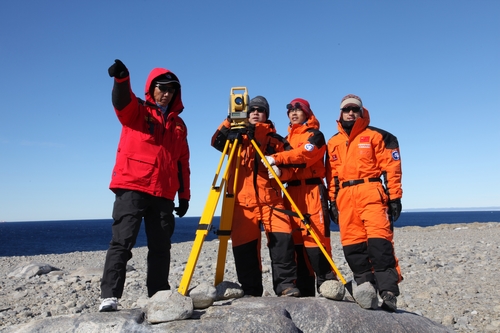 2012年12月30日早8时,雪龙船到达预选建站区域10海里的海域停泊,测绘人员在领队的带领下踏勘建站预选区域。经过空中巡视和地面重点巡视后,现场召开讨论会,确定将“预选建站Ⅰ区”作为调查的重点。随后,测绘工作组开始向陆地空运仪器设备和物资并开始工作,完成了3个GPS点选埋、宿营帐篷搭建、气象仪器安装和大气样品采集。新建站区域位于罗斯海西岸的一个独岛上,南纬74°50′—74°57′,东经163°35′—163°46′。岛屿陆地面积约50平方公里,南北走向。岛屿北侧、西侧和南侧均为冰川,东侧毗邻罗斯海。在“预选建站Ⅰ区”内约有平地2.2平方公里,应该是海底的沉寂区,直径200米以上的淡水湖有三个,其中最大的湖泊直径400多米并和南极大陆冰盖相连,地表上全是大小不等的河流石,通行条件极差,全地形车不能使用。岛上阿德雷企鹅非常多。