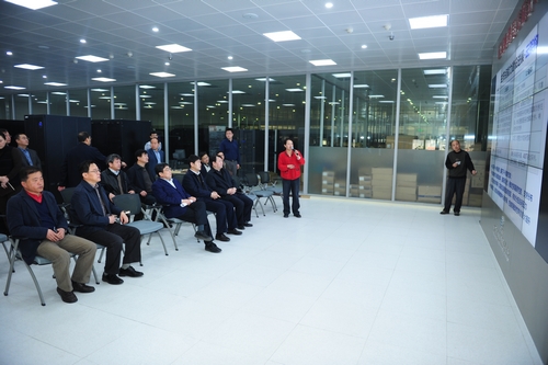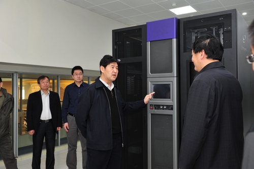 | 徐德明一行深入机房了解天地图的有关硬件配置建设等情况。 |