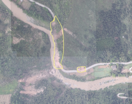 | 滑坡体及受损公路(点击可放大) |