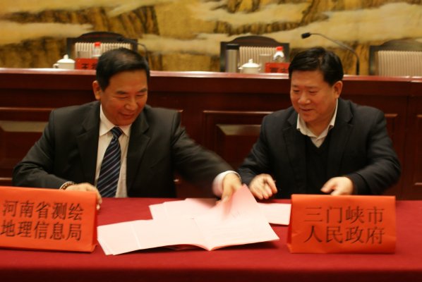 本网讯 记者秦福军 王红闯报道 4月23日,河南省测绘地理信息局组织有关专家在三门峡对三门峡市国土资源局、三门峡市电子政务办公室和河南省遥感测绘院联合编制的《数字三门峡地理空间框架建设项目设计书》进行了评审,并举行了启动仪式。河南省国土资源厅党组成员、省测绘地理信息局局长贾志伟,三门峡市副市长王振清、国家测绘地理信息局数字城市建设办公室副主任、研究员张义,河南省测绘地理信息局副局长禄丰年、中国工程院院士许其凤、中国测绘科学研究院、解放军信息工程大学、河南理工大学等有关专家及市直、各县区主管负责任和有关人员参加启动仪式。禄丰年与王振清分别代表省测绘地理信息局与市政府签署《数字三门峡地理空间框架建设项目合作协议书》。