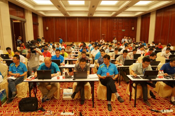 6月17日晚,地籍测绘内业编辑成图竞赛项目在黄河迎宾馆迎宾会堂中二会议室举行。国家测绘地理信息局总工程师、竞赛组委会副主任、竞赛技术委员会主任胥燕婴,国家测绘地理信息局职业技能鉴定指导中心主任、竞赛组委会办公室主任易树柏等领导在比赛现场巡视,裁判长禄丰年宣布竞赛纪律和规则。