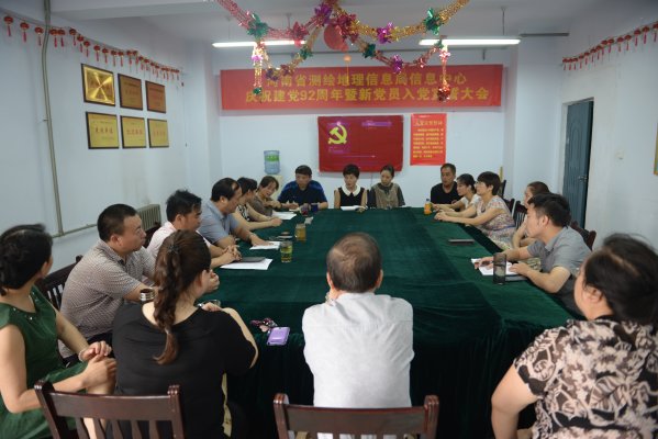 本网讯 通讯员关寒冰 任远报道 6月26日,在党的92周岁生日来临之际,河南省测绘地理信息局信息中心召开“庆祝建党92周年暨新党员入党宣誓大会”。河南省测绘地理信息局信息中心全体党员参加了大会,大会由中心副主任赵海滨主持。