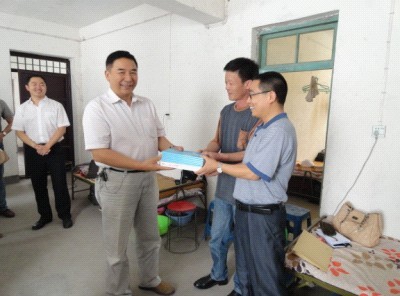 七一”期间,河南大地骄阳似火,河南省测绘地理信息局党委书记、局长贾志伟、副局长禄丰年和王进福分别带领局机关党委、有关处室领导和同志组成的慰问调研组冒着酷暑深入外业一线测区调研和有关市局,亲切看望并慰问奋战在一线的测绘队员,同时给他们送去美好的节日祝福以及局党委对他们的关怀。贾志伟局长前往省遥感测绘院商丘睢阳外业测区,禄丰年和王进福二位副局长分别前往省基础地理信息中心漯河外业测区、省地图院尉氏测区和省测绘工程院许昌外业测区进行调研慰问。在测区,局领导仔细察看了测绘队员的工作、生活环境,询问测绘项目的进展情况、存在的问题和困难,并与测绘队员及外业基层党员进行座谈,对外业党支部的战斗堡垒作用、党员先进模范作用、路线教育等问题进行了交流探讨。局领导一行还为测绘外业职工带去了慰问金和丰富的精神食粮,从《经纬思鉴》到生活菜谱以及教育学习光盘,体现了局领导对一线职工的具体关怀,使大家深受鼓舞,激发了大家奋发工作、锐意创新的热情,纷纷表示要立足岗位,努力工作,圆满完成测绘任务,为河南测绘地理信息事业贡献自己的力量。