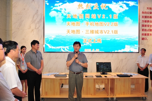 | 与会人员参观天地图公司。徐德明局长亲自宣布天地图网站V2.1版、天地图·手机地图V2.2版、天地图·三维城市V2.1版正式上线。 |