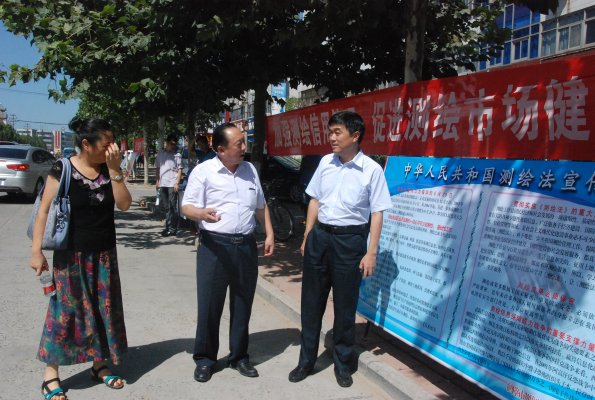 为进一步加强宣传,提高全社会对测绘地理信息法律法规的认识,引导全社会更加关注、理解、支持测绘地理信息事业,8月29日上午, 鹤壁市国土资源局组织各区县测绘主管部门和测绘单位,举办了以“依法规范地图市场,更好服务社会大众”为主题的测绘法宣传活动。鹤壁市国土资源局党组书记局长段东宏、调研员李尚修参加了主会场的宣传活动。