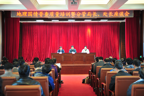 为进一步强化地理国情普查质量意识,加强质量管理,推进普查工作,11月6日至8日,国家测绘地理信息局召开第一次全国地理国情普查质量培训班,来自全国的质量管理人员及质量检查技术骨干200多人参加培训。培训班期间,国务院第一次全国地理国情普查领导小组办公室又专门召开了分管局长、处长座谈会。国务院普查办常务副主任、国家测绘地理信息局副局长李维森出席会议并讲话。
