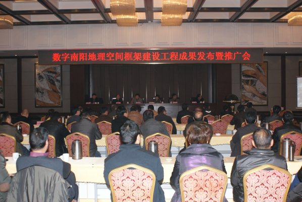 12月21日,国家测绘地理信息局组织有关专家,在南阳对南阳市国土资源局和河南省测绘工程院共同完成的2011年国家级数字城市建设推广项目“数字南阳地理空间框架建设工程”进行成果验收,并召开成果推广会。国家测绘地理信息局总工程师胥晏婴参加会议并讲话、国土测绘司副司长孔金辉主持验收会、河南省测绘地理信息局局长贾志伟到会讲话、副局长禄丰年宣读验收意见,南阳市人民政府副市长和学民致辞,解放军信息工程大学、河南理工大学等有关专家参加会议,河南省测绘地理信息局有关人员、南阳市国土资源局机关科室负责人、南阳市市直有关单位负责人、各县区有关领导参加会议。