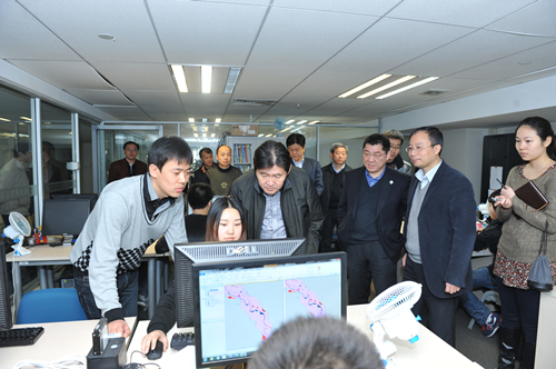 徐德明在现场听取了项目负责人关于项目情况的汇报,就数据获取、地理属性标注、影像卫片更新以及工作人员工作生活等问题与大家进行广泛交流。