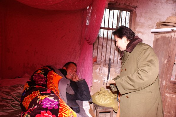 贾志伟同志亲自把慰问金送到瘫痪在床的病人手中