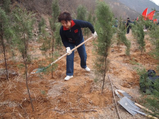 河南省测绘地理信息局干部职工参加“关爱自然、义务植树”志愿服务活动。