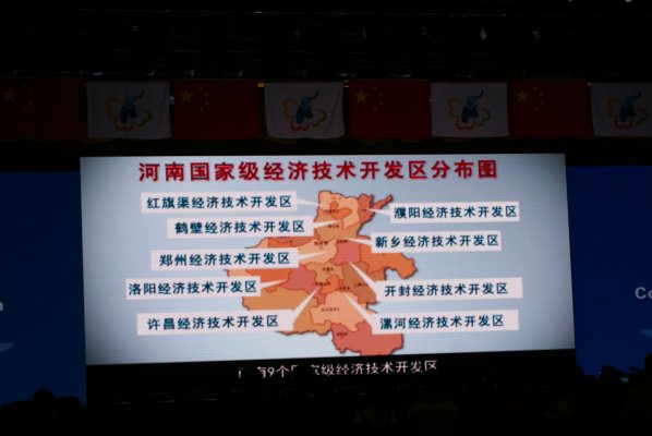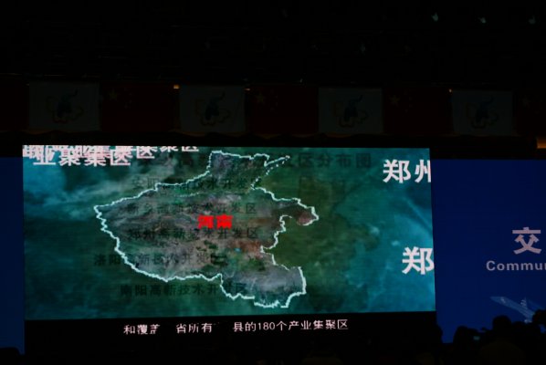 开幕式上播放了《开放的河南欢迎您》专题片是主要介绍河南的宣传品,省委省政府可谓独出心裁才,把对经济开发区、产业集聚区、郑州航空港经济综合实验区等重点项目的介绍,用地图示意图和影像图等形式直观地介绍给中外客商和各位领导,河南国家级经济技术开发区分布图、郑州航空港经济综合实验区概念性总体规划图、覆盖全省所有市县的180个产业集聚区影像图等十余幅不同的地图从不同侧面形象地展示了河南投资的优势与特点。