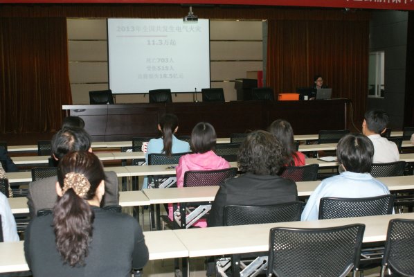 宣讲团刘教员以发生在大家身边的一个个鲜活的消防案例,揭示了由于消防通道不通畅、公众消防意识淡薄、缺乏基本的逃生本领,在火灾发生时造成的惨重人员伤害和财产损失;讲解了在办公区、商场、高层住宅等场所常见的电器类、燃气类等各类火灾发生时的灭火自救逃生知识,并现场演示了应急棒、防烟面具、灭火器等消防器材的使用方法。
