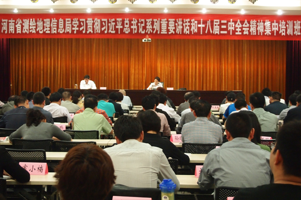 5月9日,河南省测绘地理信息局在局六楼会议室举办学习贯彻习近平总书记系列重要讲话和十八届三中全会精神集中培训班,由局党委书记、局长贾志伟同志和省直党校李雪梅教授上党课,给局机关全体人员和局属单位班子成员、中层以上干部、青年骨干、绿色通道引进人才120余人进行培训。