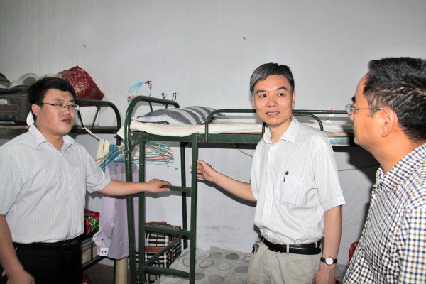刚一下车,毛忠民同志便直接走进驻地厨房和宿舍,了解外业职工住宿、伙食条件,当看到分院新购置的冰箱时,他特别指出在炎炎夏日要注意外业同志的饮食安全和住宿环境。并指着墙上挂着的液晶电视向该院领导强调,在抓生产的同时要尽量丰富外业职工的业余生活,工作之余可以看看新闻,了解国内外大事。随后,毛主任同该院领导与外业职工围坐在一起共同交流谈心。传达了局党委对外业职工的关心和慰问,并对国情普查进展情况进行重点了解,他指出很多年轻职工能够参与到国情普查这样一个国家重点项目,对个人的成长和业务进步是有很大帮助的,勉励大家要把握机遇,迎难而上,给自己的测绘经历添上浓重的一笔。毛主任还到外业现场查看了调绘宝存在的问题,外业职工也根据生产中遇见的问题向毛忠民同志提出了一些建议。毛忠民同志表示回去后一定会向局党委作专题汇报,并且把相关技术问题反映给省国普办。最后,毛忠民同志代表局党委向外业职工发放了遮阳帽、水壶及慰问金。
