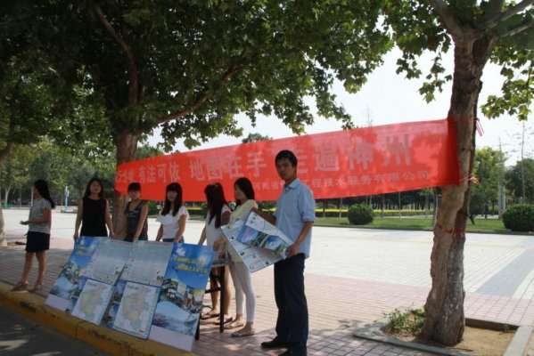 为进一步加强对测绘法律法规的宣传,提高全社会对测绘地理信息法律法规及工作重要性的认识,使全社会更加关注、理解、支持测绘地理信息事业,为测绘地理信息事业发展营造良好的法治环境,8月29日,河南省恒信工程技术服务有限公司按照省测绘地理信息局有关要求和郑州市国土资源局的安排,精心组织、认真部署,采取多种形式,在郑州经开区中心广场开展了以“测绘法宣传日活动将以发展地理信息产业、地图服务大众生活及地理国情普查”为主题的宣传活动。