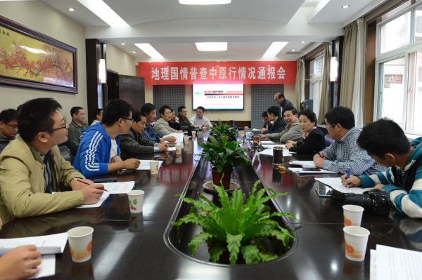 9月16日,地理国情普查中原行情况通报会在河南省测绘地理信息局召开。河南省第一次全国地理国情普查领导小组办公室主任、省测绘地理信息局局长贾志伟出席会议并致辞,河南省第一次全国地理国情普查领导小组办公室常务副主任、河南省测绘地理信息局副局长禄丰年作地理国情普查情况介绍,会议由省普办宣传报道组组长、省测绘地理信息局党委委员毛忠民主持,省普办副主任、省测绘地理信息局党委委员宋新龙出席会议。省普查办有关工作组成员、普查参与单位负责人以及来自河南日报、河南法制报、大河网、人民日报海外网中原频道、中国测绘报等13家媒体的记者参加了会议。
