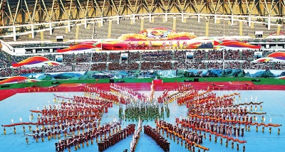 9月19日,河南省第十二届运动会暨首届全民健身大会在焦作市开幕。图为开幕式现场。(记者邓放 摄)