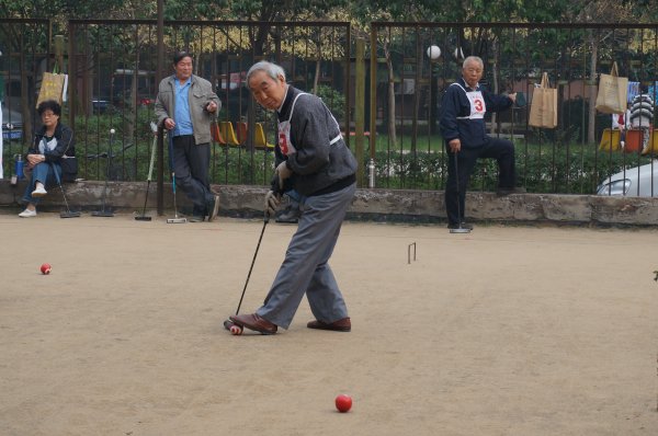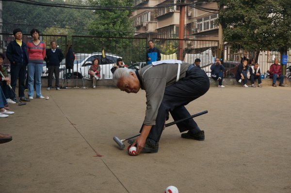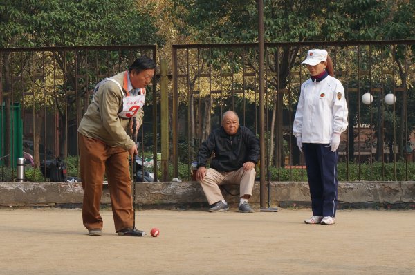 比赛当日秋高气爽,只见选手们手握重槌、气定神闲,挥杆对垒、身手矫健;比赛所聘请的正式裁判和检录员严肃认真、执裁公正,确保了竞赛的公平、有序。赛场上高潮迭起,欢呼声、惊叹声此起彼落,老人们精神抖擞、老当益壮、健康向上的精神风貌深深感染着在场观看的所有人。