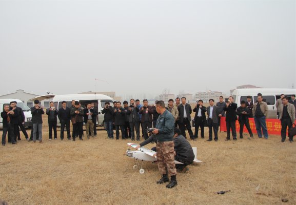 3月19日10时30分,一架无人机在河南中牟县郊区起飞后快速升至200多米高空。在专业人员的操控下,半个小时后这架无人机圆满完成方圆几千米的空中拍摄任务安全降落在飞行场地。随后,有关此次飞行采集的航空摄影测量数据很快处理成高分辨率、高清晰的影像资料。记者在飞行现场获悉,这是黄河水利委员会成功引进无人机航空遥感系统后的首飞观摩活动,观摩现场的有关领导和专家对这架无人机的平稳起降、飞行以及快速获取、传输高清晰地理信息影像进行了充分的肯定和赞许。