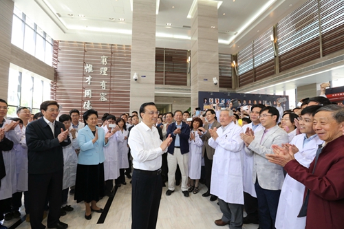 李克强来到中科院物理所,听取基础研究和原创成果介绍,他走进超导实验室和电子显微镜实验室,对相关领域研发进展和设备自主研制情况表示肯定。李克强说,基础研究的深度和广度,决定着国家原始创新动力和活力,只有夯实这个“地基”,才能矗起国家核心竞争力的“大厦”。推动我国产业发展向中高端水平迈进,必须有基础研究支撑。要加大对基础研究的支持力度,攻克一批重大关键技术难题,以更多高水平原创性成果推动应用研究和产业升级。