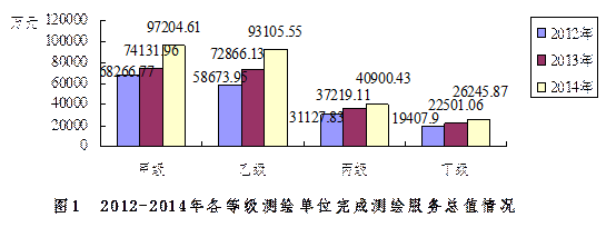 2、各等级测绘单位完成测绘服务总值呈增长态势