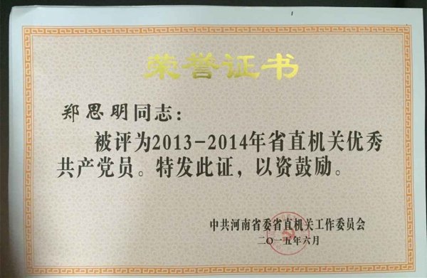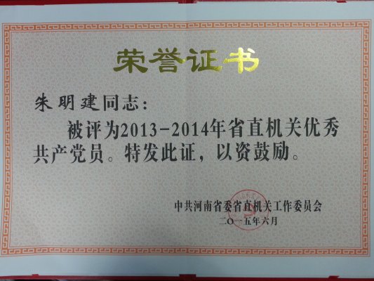 6月25日召开的河南省直机关践行“三严三实”报告会暨庆“七一”表彰会议上,河南省遥感测绘院党委荣获“五好”基层党委称号,河南省测绘地理信息局后勤服务中心党支部荣获“五好”党支部称号,河南省地图院院长兼党委副书记朱明建、河南省测绘地理信息局信息中心主任郑思明二位同志荣获省直单位优秀共产党员称号,
