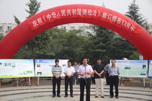 “树立国家版图意识,维护国家主权安全。” 8月29日上午,为庆祝《中华人民共和国测绘法》修订颁布13周年,河南省测绘地理信息局和郑州市国土资源局联合举办的全国“8·29”测绘法宣传活动首次在社区隆重举行。河南省国土资源厅党组成员、河南省测绘地理信息局党委书记、局长刘济宝出席活动并讲话,河南省测绘地理信息局党委委员、纪委书记何晨现场接受河南电视台采访,河南省测绘地理信息局党委委员、副局长王进福,郑州市国土资源局副局长李跃升等领导应邀参加活动。驻郑甲级测绘资质单位、省直管测绘资质单位、局属各单位及局机关各处室(部门)等共计约100家相关单位组织并参加活动。